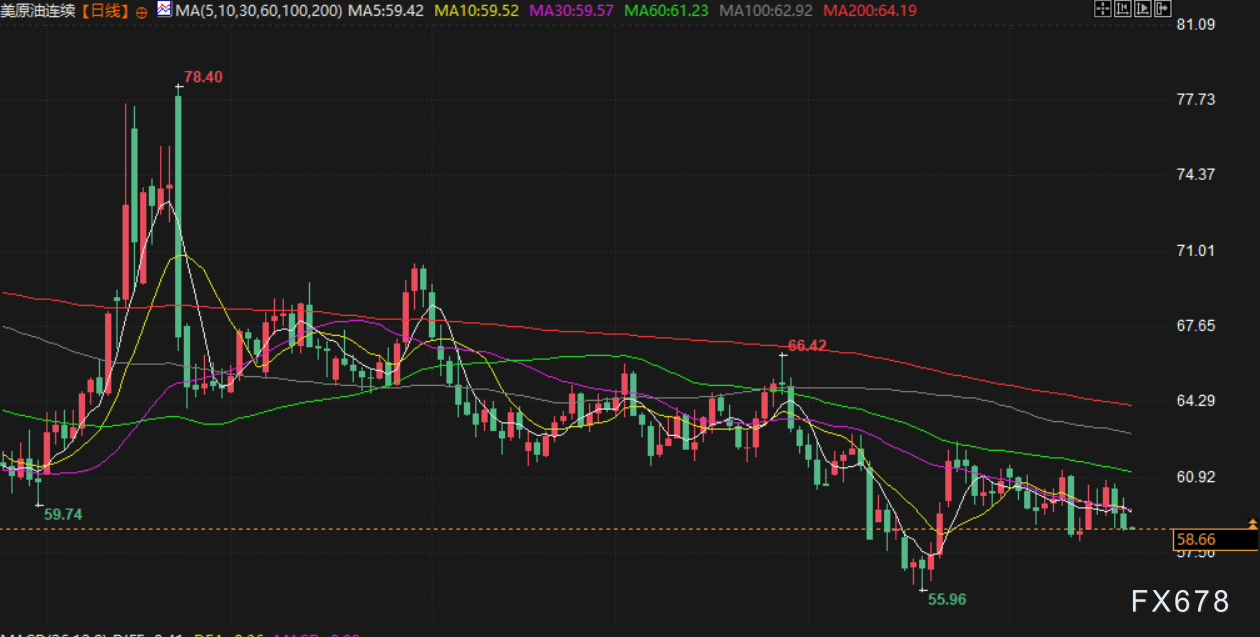 周五(北京时间11月21日)亚市早盘,现货黄金交投于4082.30美元/盎司附近,金价周四承压下行,受美国9月就业数据强劲影响,美联储12月降息的可能性减小;美原油交投于58.64美元/桶,油价周四震荡收跌,尽管美国原油库存降幅超预期带来支撑,但美国推动俄乌和谈的消息引发供应过剩担忧,最终压制了市场情绪。