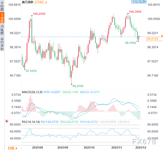 美国国内深层次的可负担性危机,暴露了其经济供给侧的脆弱性。这不仅是社会问题,更是影响美元资产吸引力和美元汇率基础的宏观经济问题。周五(12月5日)美元指数于99.00附近窄幅震荡,前一交易日一度触及近五周低点98.77。