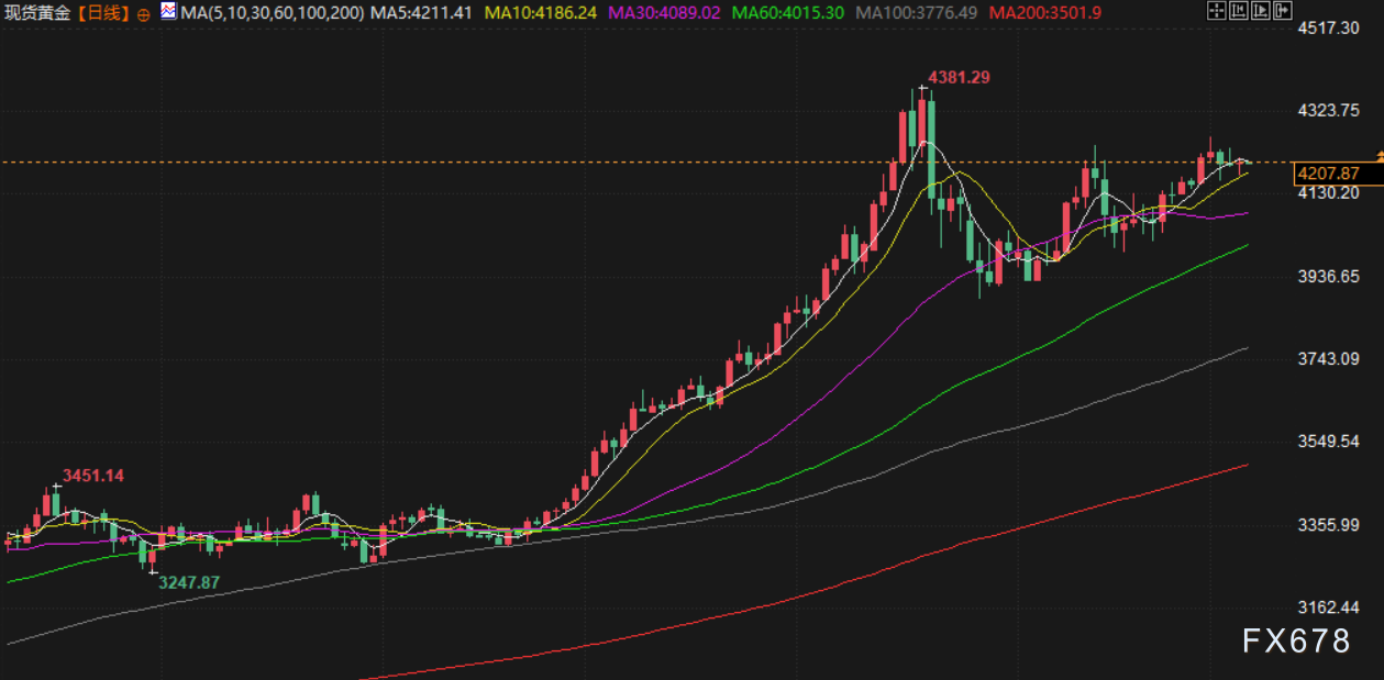 周五(北京时间12月5日)亚市早盘,现货黄金交投于4207.50美元/盎司附近,金价周四基本持稳,呈现出多空因素拉锯的格局。市场在等待美国通胀数据,以研判美联储下周的政策前景;美原油交投于59.70美元/桶附近,油价周四收涨,主要受美联储降息预期提振和乌克兰和谈陷入僵局双重因素推动。